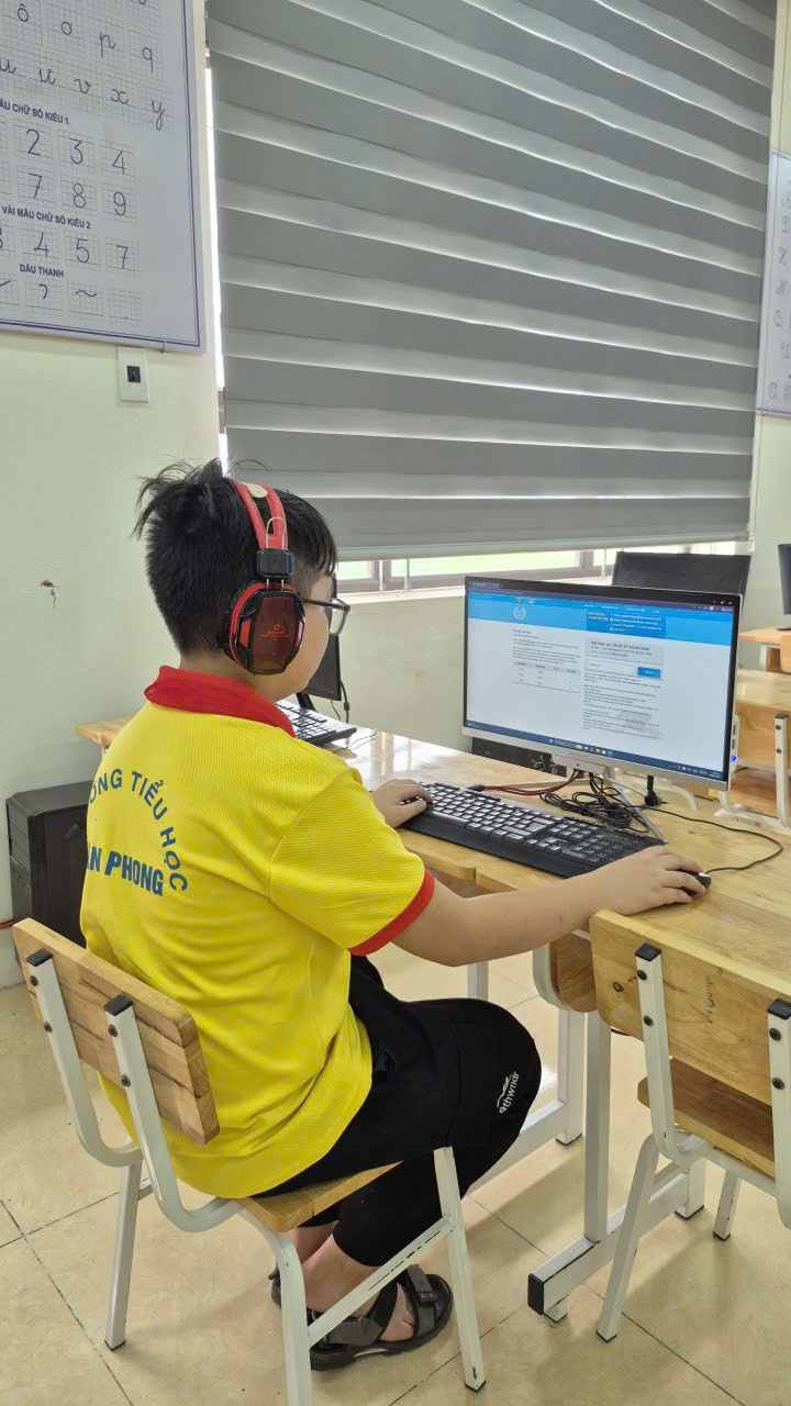 Trong suốt thời gian diễn ra cuộc thi, không khí tại phòng thi diễn ra nghiêm túc, trật tự. Các thí sinh tham gia với tinh thần bình tĩnh, tập trung cao độ để hoàn thành bài thi. Hệ thống câu hỏi không chỉ kiểm tra kiến thức Tiếng Anh mà còn đánh giá khả năng tư duy, phản xạ ngôn ngữ và kỹ năng làm bài trên môi trường số của học sinh. Đội ngũ cán bộ, giáo viên làm nhiệm vụ coi thi đã thực hiện nghiêm túc quy định, đảm bảo tính công bằng, khách quan.